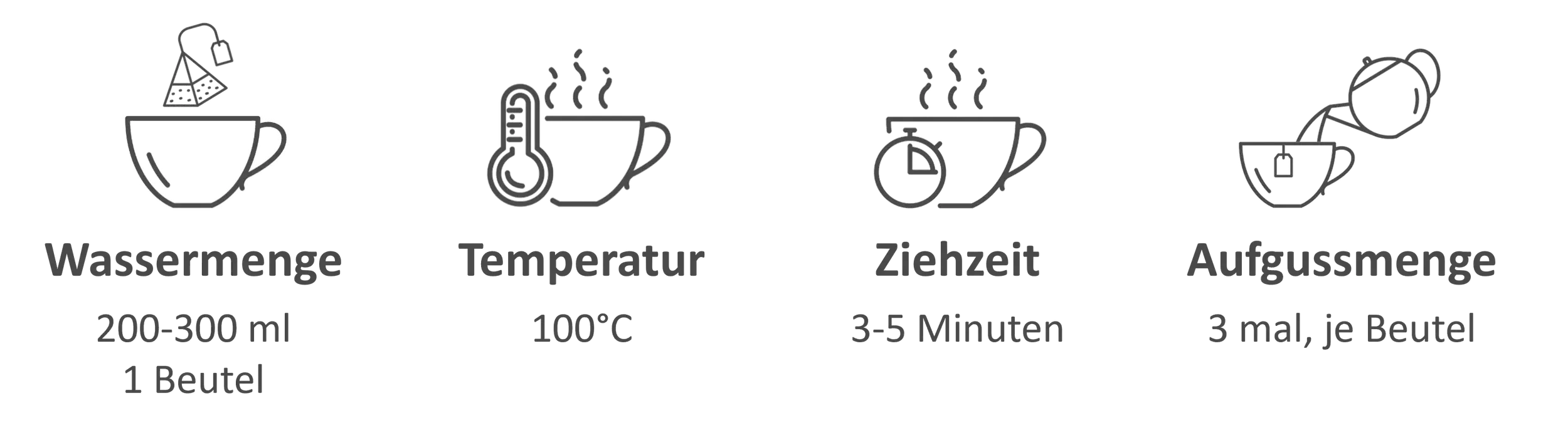Wir empfehlen den Tee mind. bis zum Abklingen der Beschwerden einzunehmen. Bei regelmäßigen Magenbeschwerden empfehlen wir eine kontinuierliche Einnahme für eine vorbeugende Wirkung.